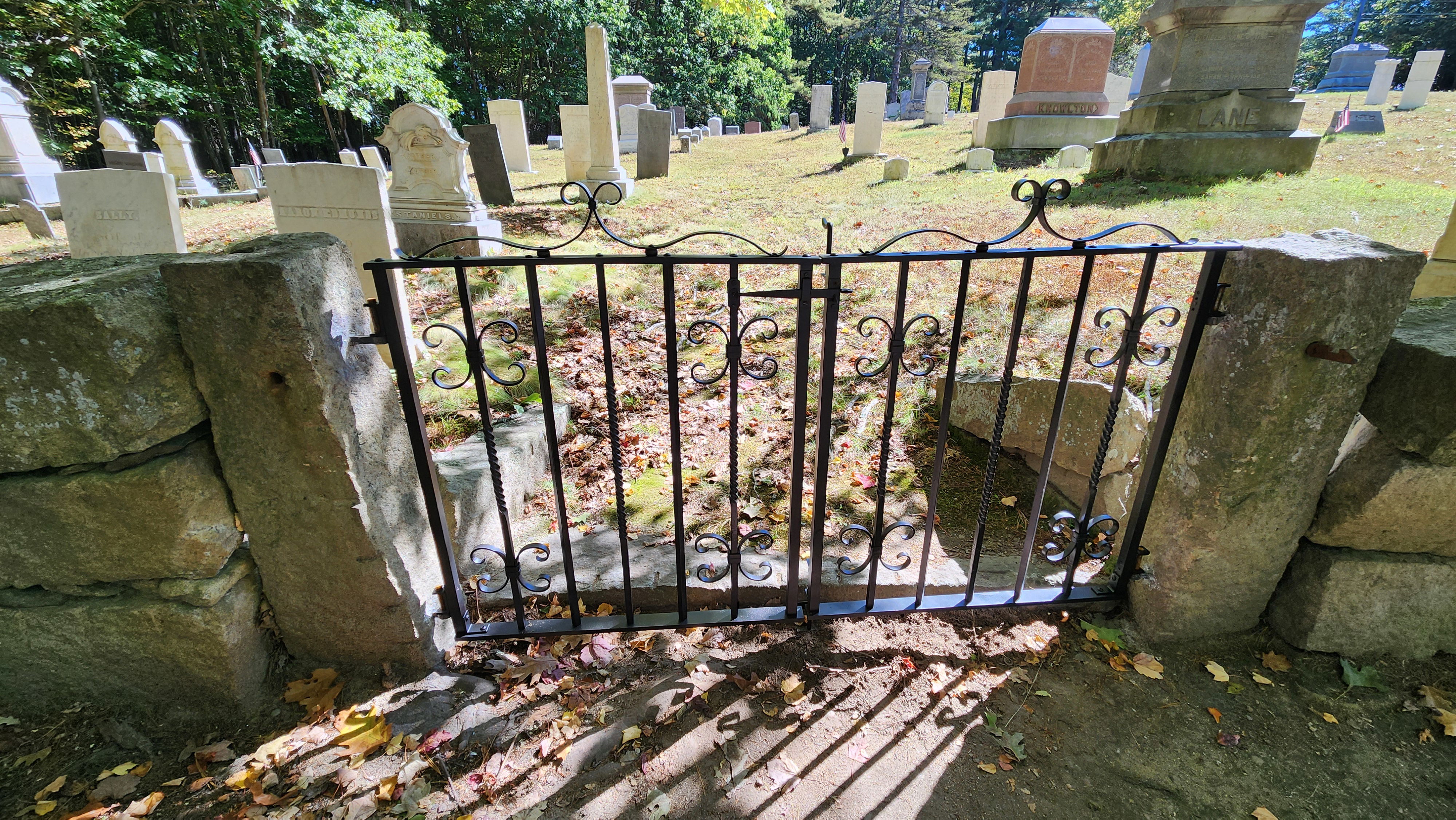 Garry Kalajian has completed the creation and installation of two black iron gates at Knowlton-Edgerly Cemetery. Once again Garry’s craftsmanship is excellent and beautiful! Garry submitted his invoice for payment which was $825 higher than estimated due to the complexity of the gate installation. The Cemetery Trustees approved the increase in cost. We prepared the payment authorization for Garry’s invoice for Fred to submit to the Trustees of the Trust Funds.